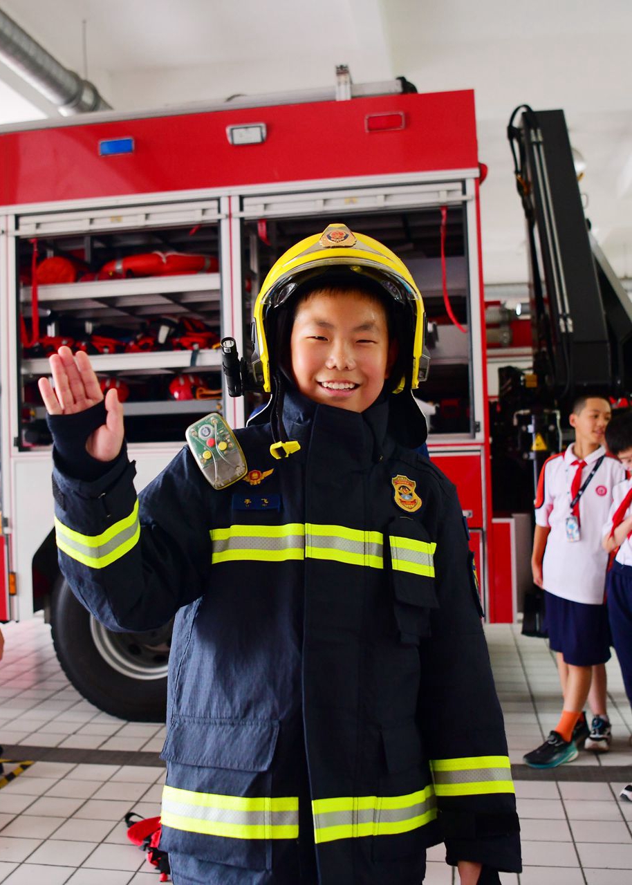 理论学习后,便是充满挑战与惊喜的沉浸体验环节。同学们在消防员的悉心指导下,纷纷试穿重达20公斤的消防服。当沉重的装备压在身上,同学们切实感受到了救援装备的分量,更深刻体会到消防员每次出警时肩负的重大责任。同学们感慨道:“穿上这身衣服,才真正明白消防员工作的艰辛,他们真的是在用自己的生命守护我们的安全。”