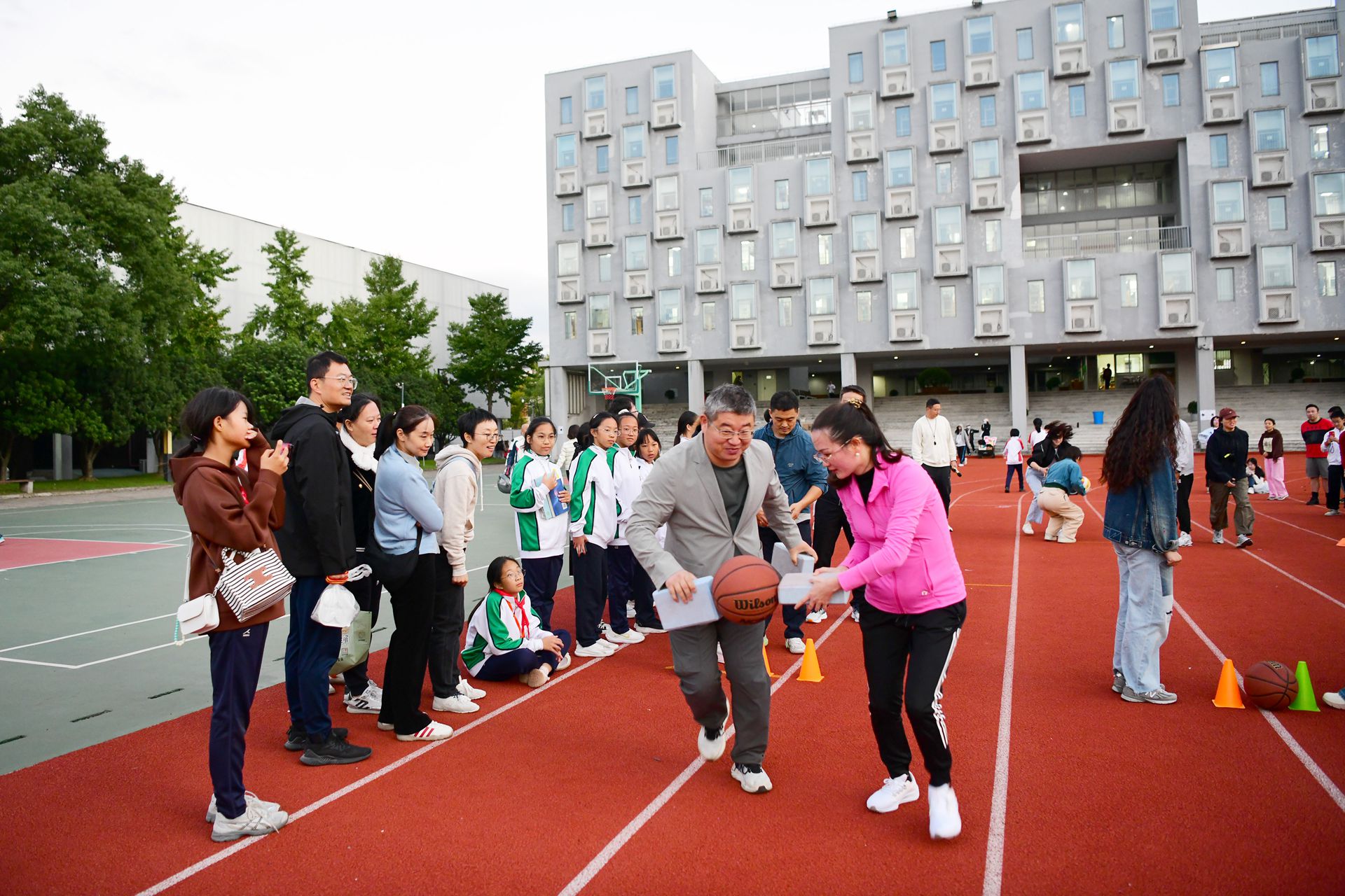 相较于田径项目的紧张激烈,“毛毛虫”趣味比赛则充满了欢声笑语。师生与家长在轻松愉快的氛围中互动协作,不仅体验了运动乐趣,更增进了彼此情谊。