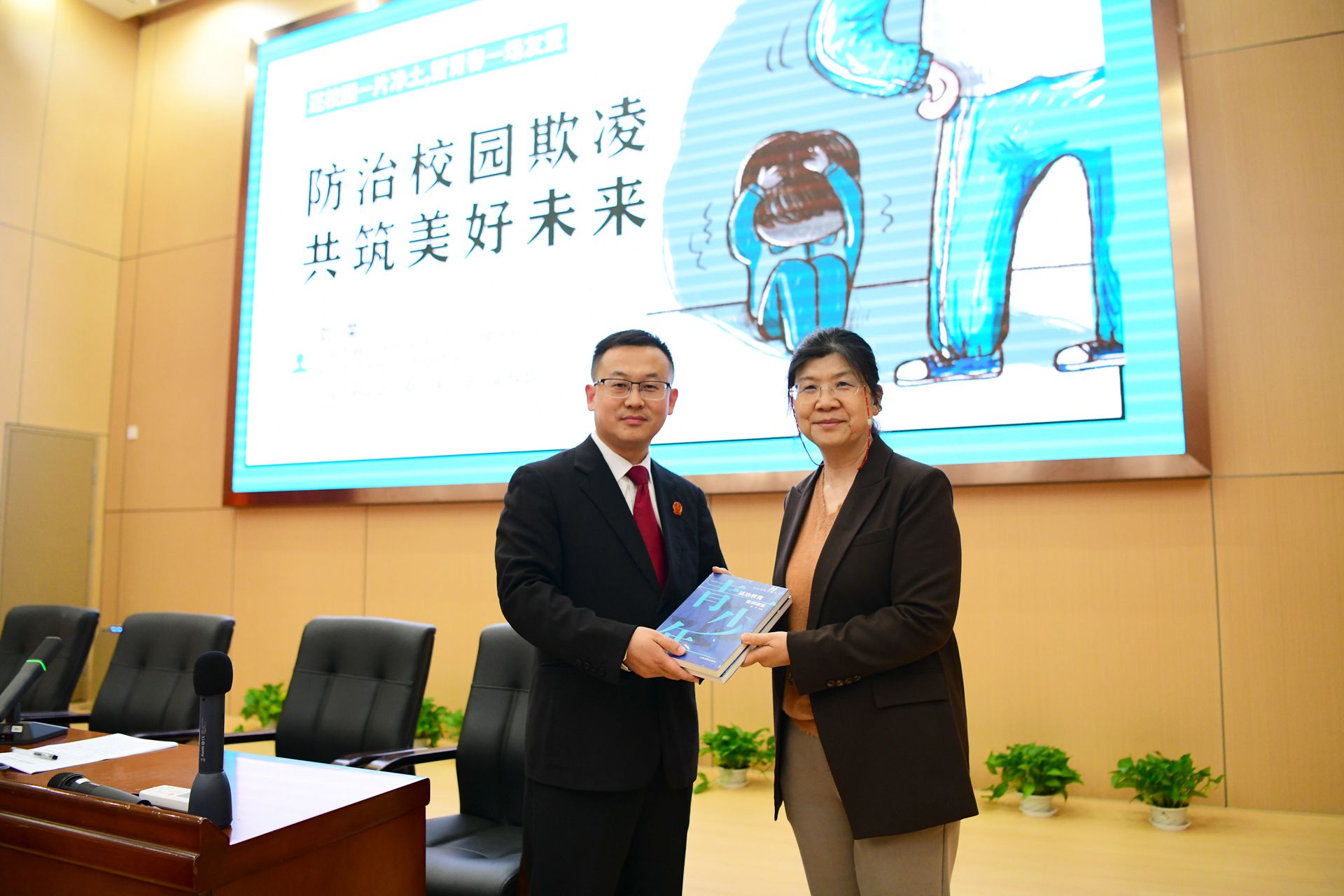 讲座前刘荣法官向学校赠送《青少年法治教育案例课堂》《青少年法治教育法律法规》书籍,为我校法治教育注入新的资源与力量。