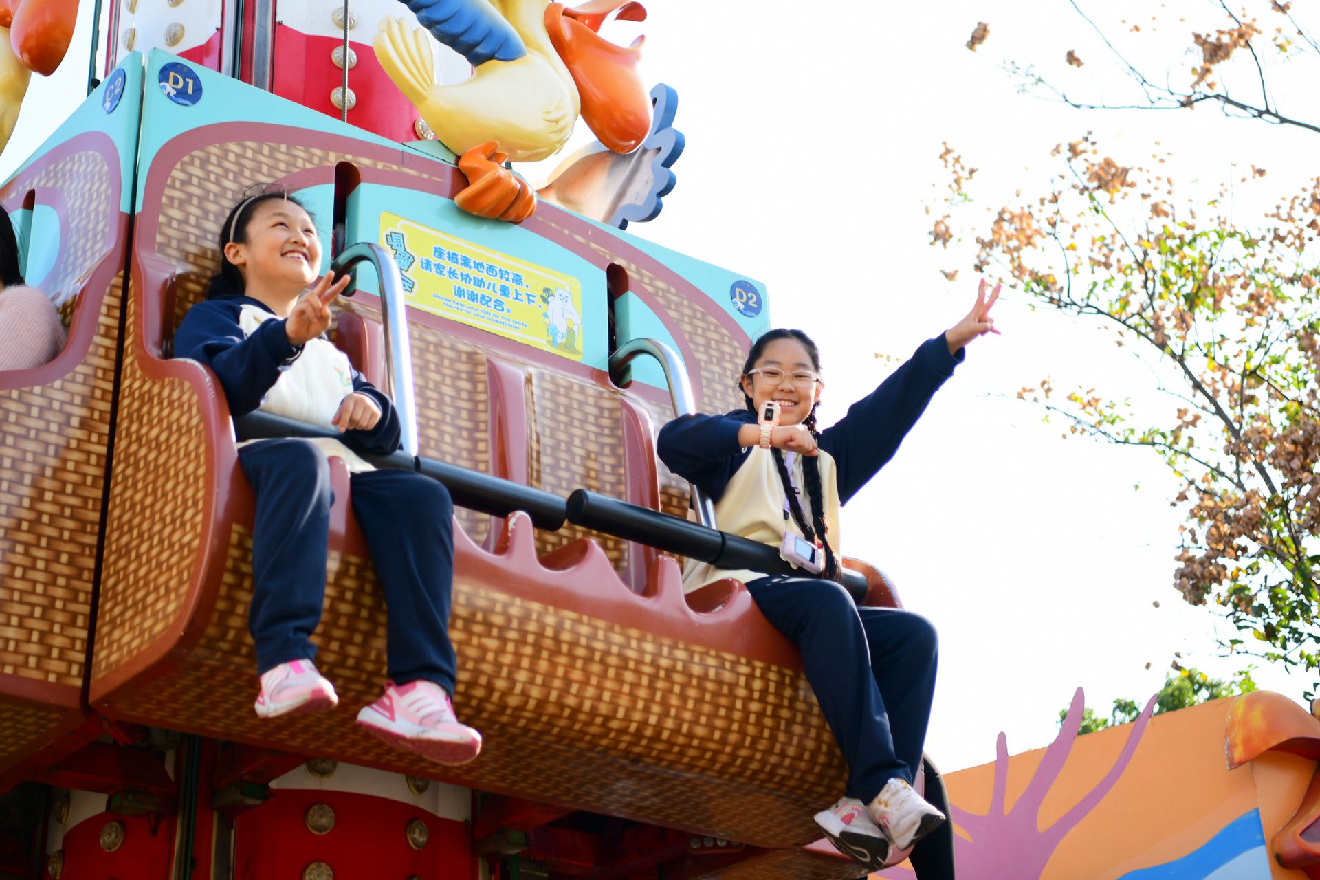 也有同学沉醉于旋转木马的轻快旋律,或在“欢乐海洋”主题区与可爱的卡通角色合影互动,在轻松氛围中找回纯真时光。