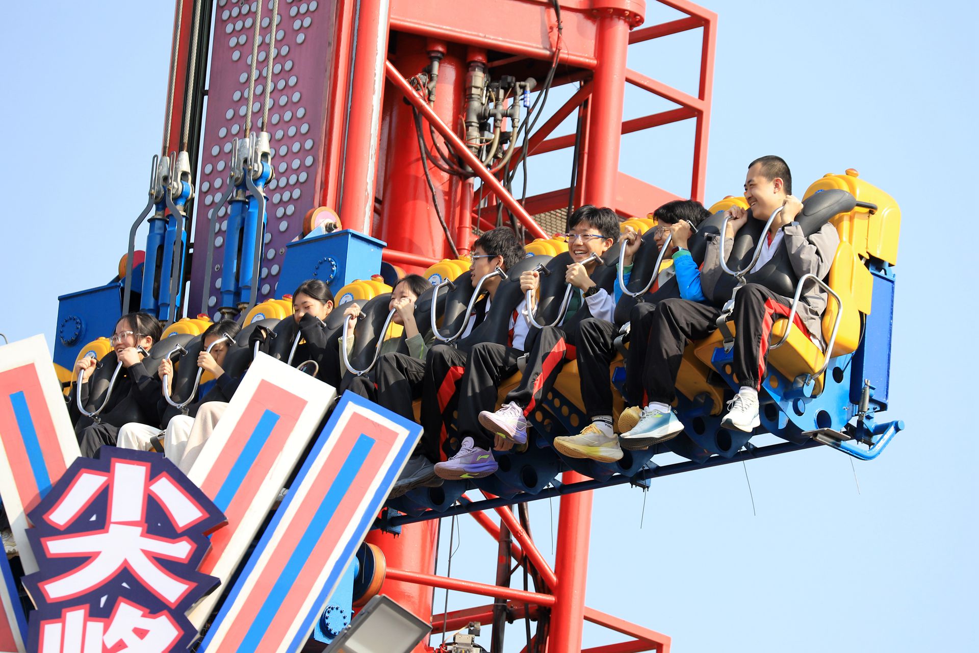 同一片秋日晴空下,欢乐谷中洋溢着青春的活力与热情。