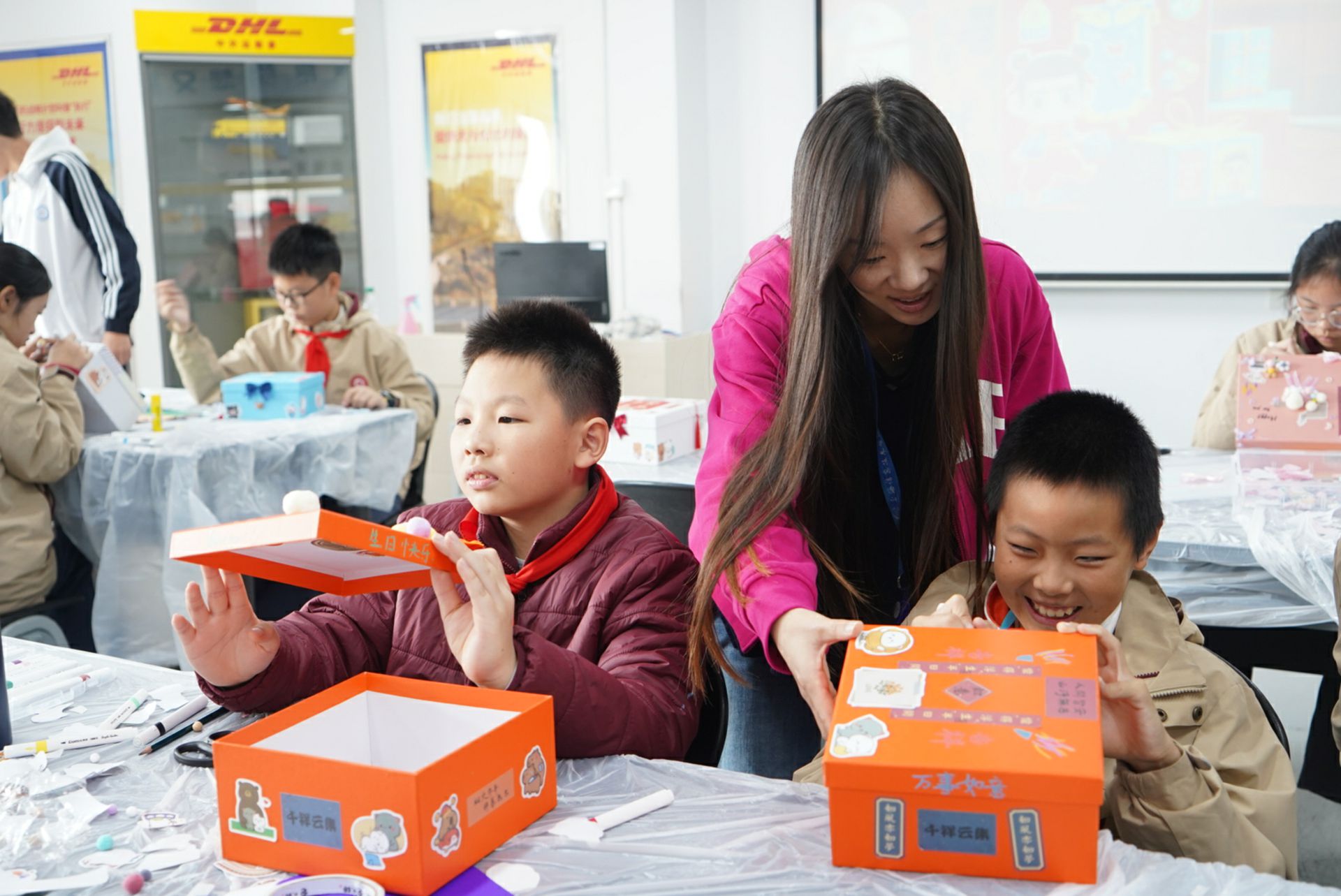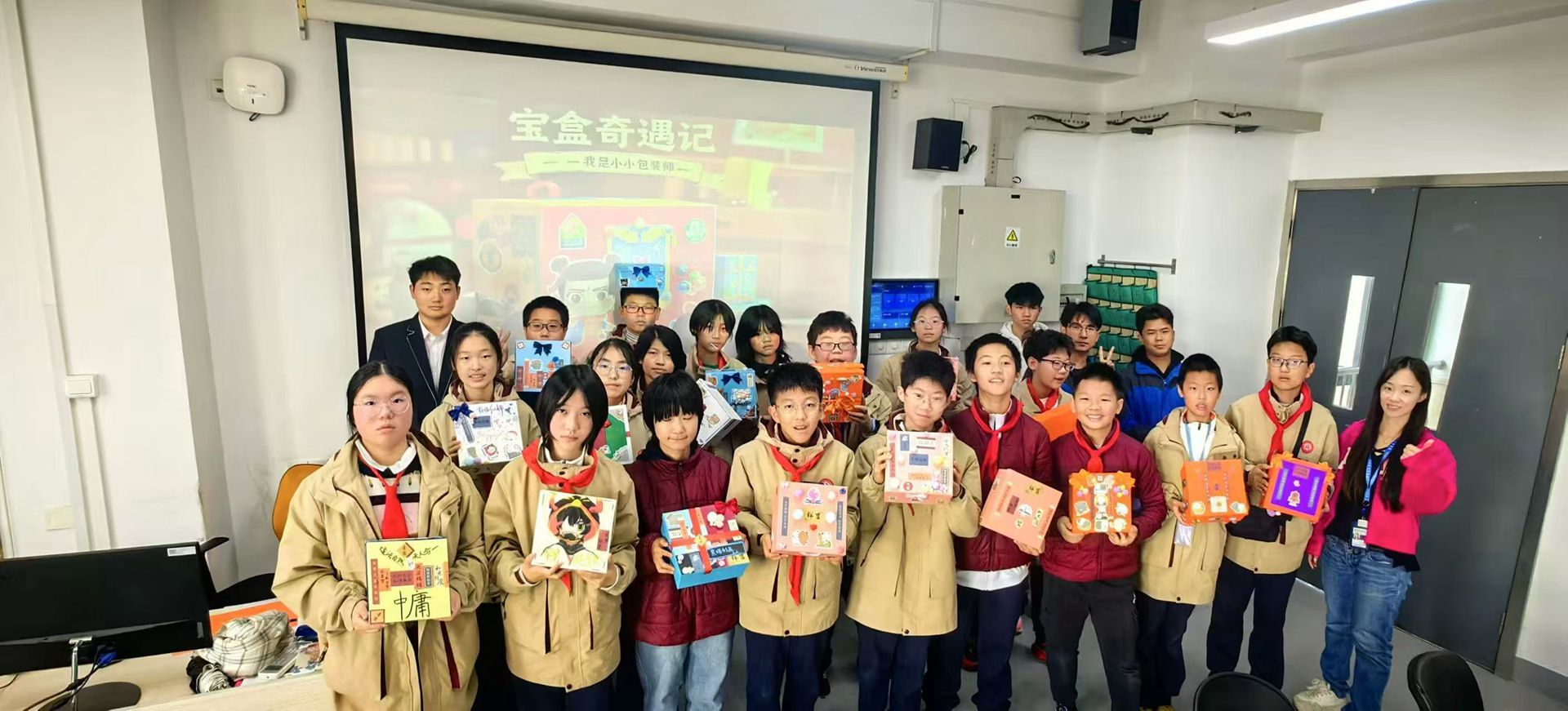 “如何让包装盒既美观又体现中国文化?”在“我是小小包装师”课堂上,杨梦蓝老师提出的问题引发了同学们的热烈讨论。课程围绕丝路主题,分为知识讲解、创意设计、手工制作和作品展示四个环节。