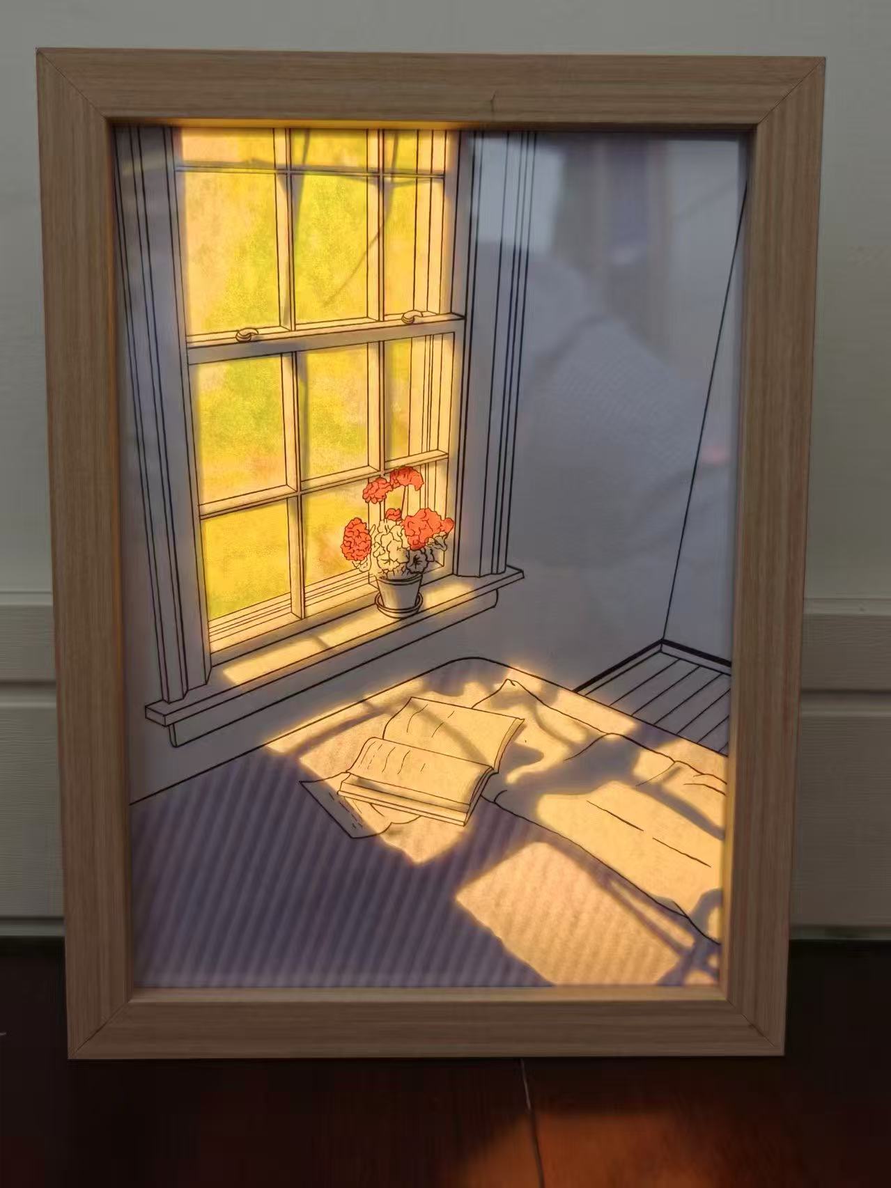 同学们在老师的指导下,共同完成了一幅温馨的窗户投影作品。灯亮一刻,暖光映照,宛如经典电影画面,美不胜收。
