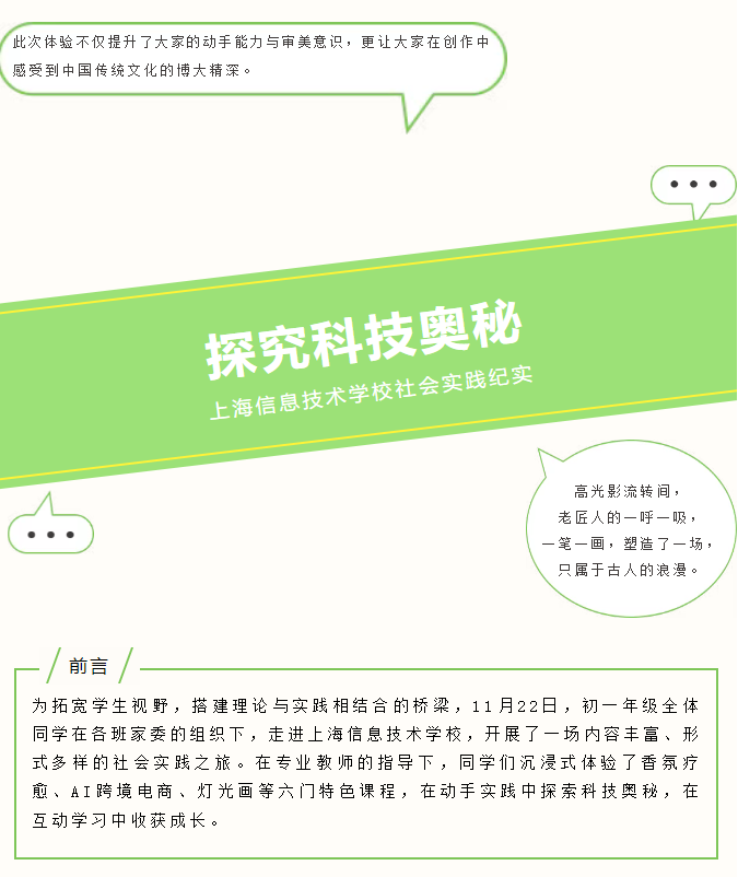 此次上海信息技术学校社会实践之旅,为初一年级同学打开了课堂之外的新视界。