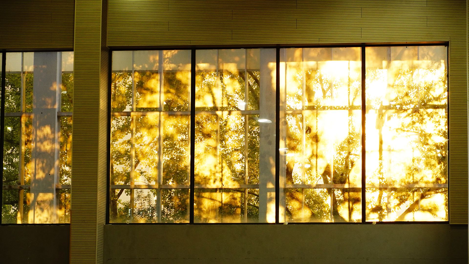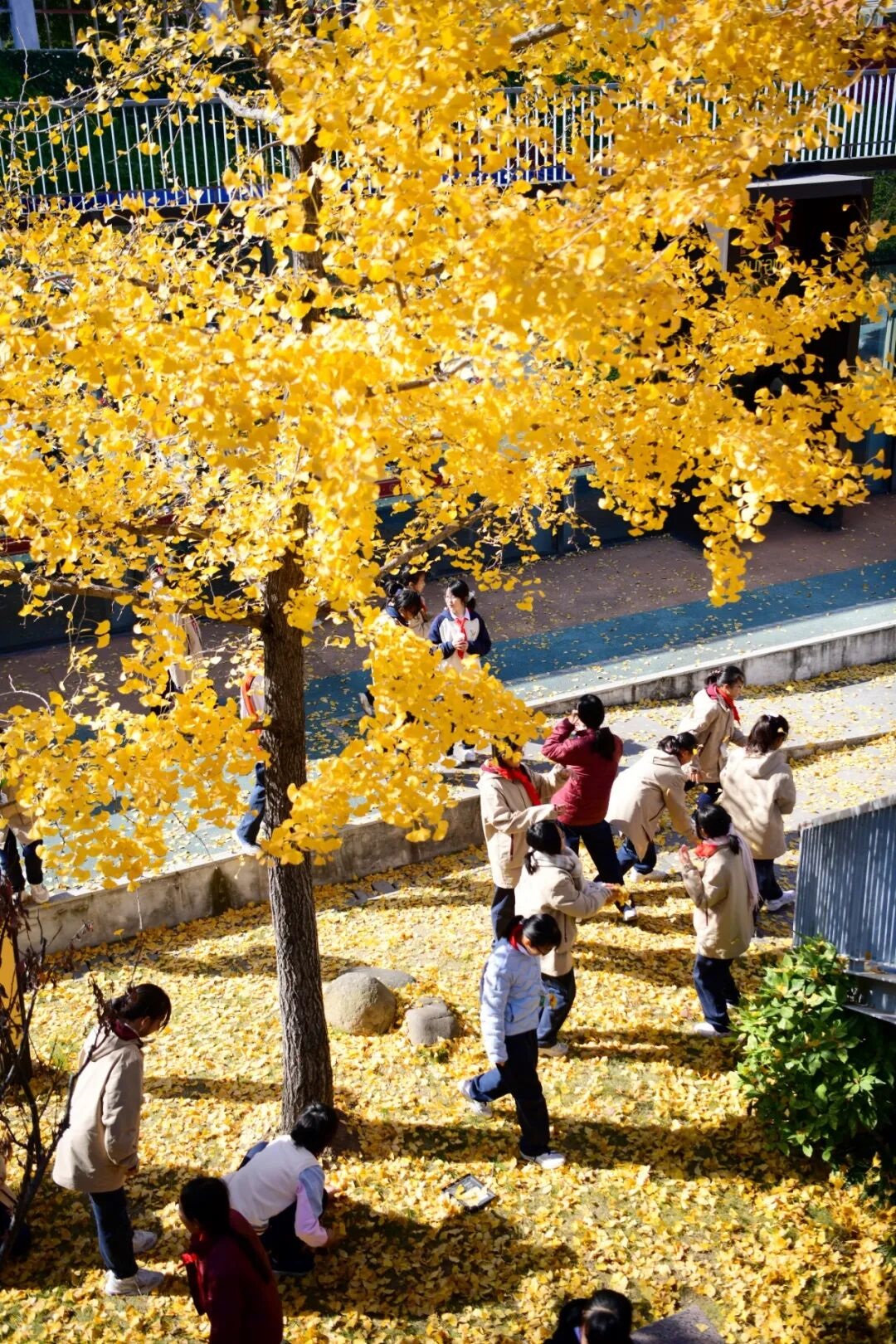 食堂明净的落地窗后,面朝银杏林的座位,此刻成了最好的观景席。午餐时分,老师们望向窗外金黄树影间嬉戏的身影,轻声叹道:“一棵树,撑起了一个美好的午后。”