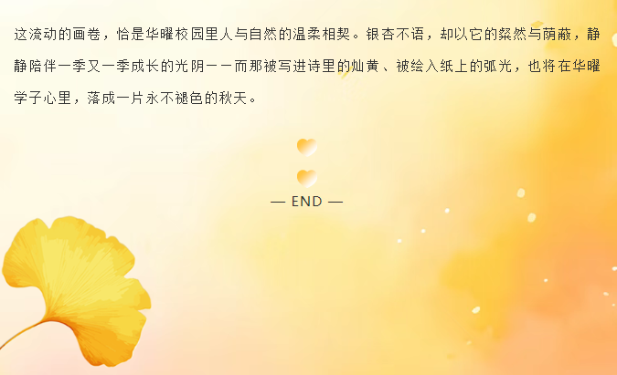 课间时分,有人追逐着旋舞的落叶,笑声清亮如光,跌落在铺满银杏的长廊;楼梯上,有人静静驻足凝望,目光里满是明亮的向往,仿佛正将眼前这喧嚷的秋天,轻轻拢进自己的眼眶。