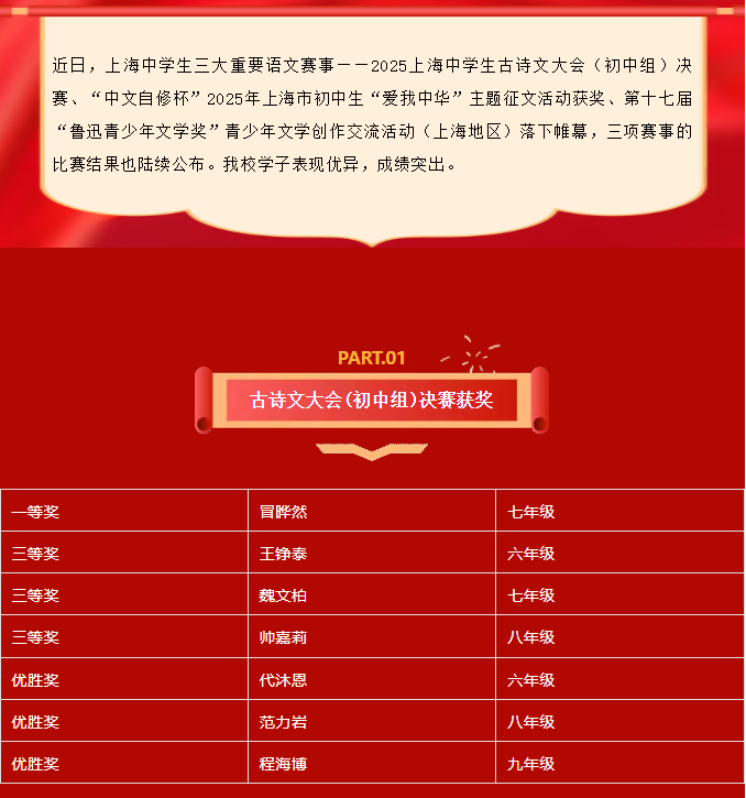 喜报:华曜学子在上海中学生三大重要语文赛事中取得佳绩