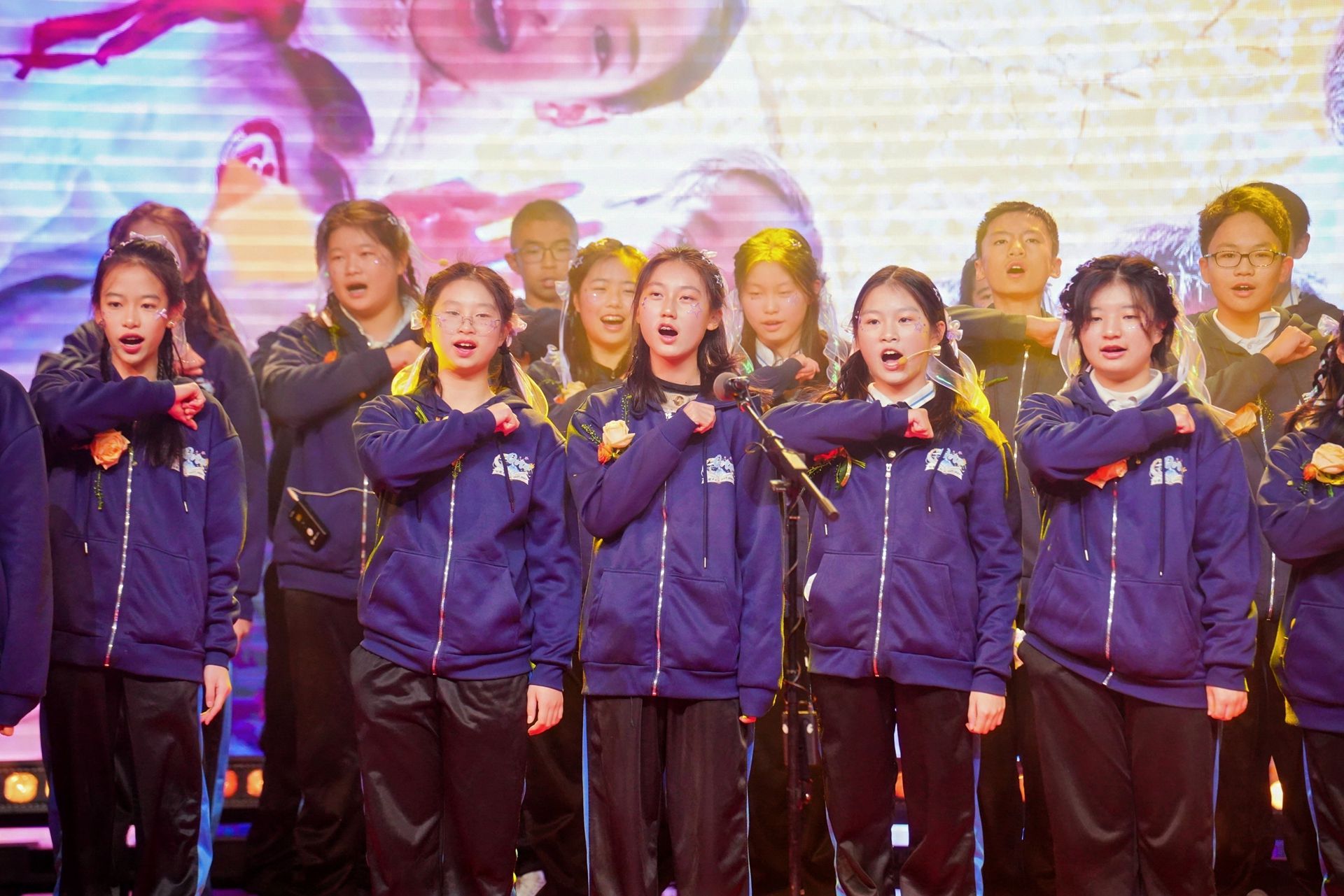 初一(1)班的《如愿》如月光流淌,唱出对家国未来的清澈憧憬;预备(3)班的《苟活之重生》爱国版,则以少年的嗓音诠释何谓热血担当。
