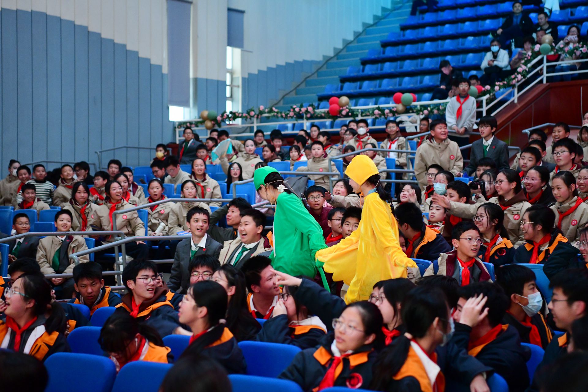 当所有人以为演出已尽,惊喜却悄然降临——《Zoo》的旋律响彻全场!张馨之同学领舞而起,主持人、演员、大队委员纷纷走向台前,台上台下瞬间融为一片欢乐的海洋。这一刻,没有观众与演员之分,只有跃动的心跳、灿烂的笑容,与永不落幕的青春热情。