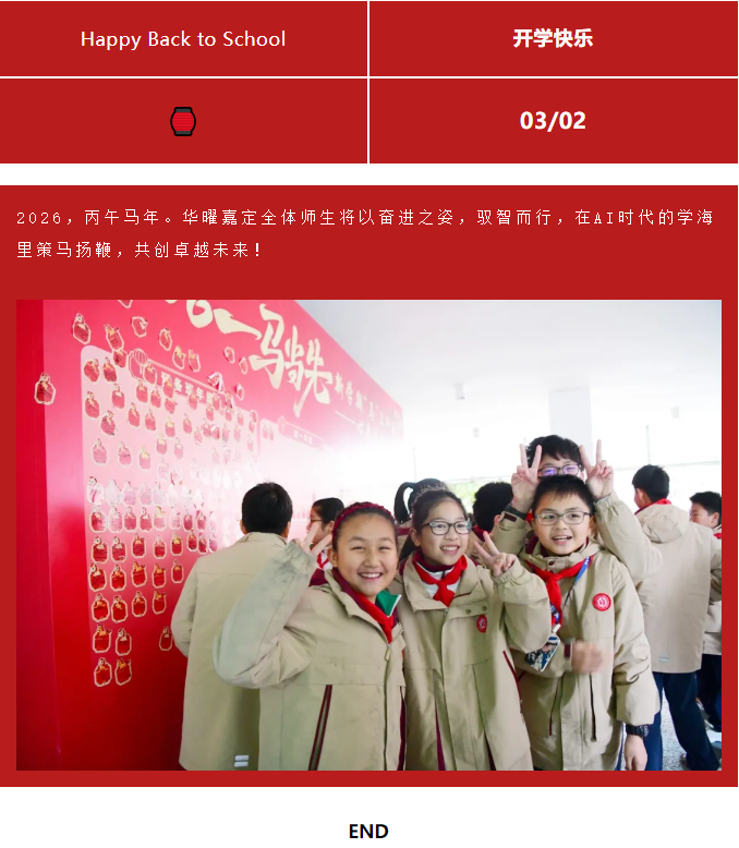 新学期,新愿景。学校特别设置“马上行动——心愿启航仪式”,号召同学们将写满梦想的“心愿马”粘贴在图书馆对面的展板上。一匹匹“心愿马”承载着少年的憧憬,汇聚成一片梦想的草原。愿每一位华曜学子都能“立刻行动,不用扬鞭自奋蹄”。